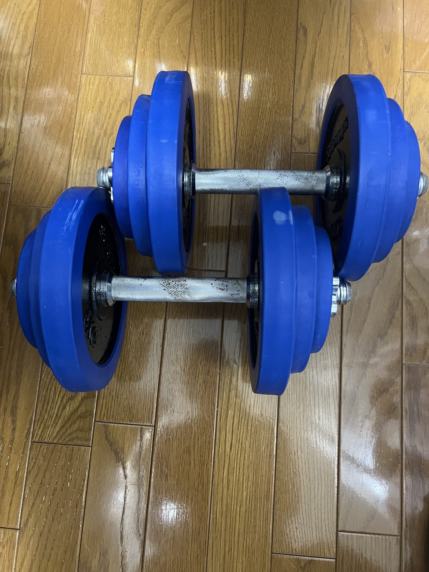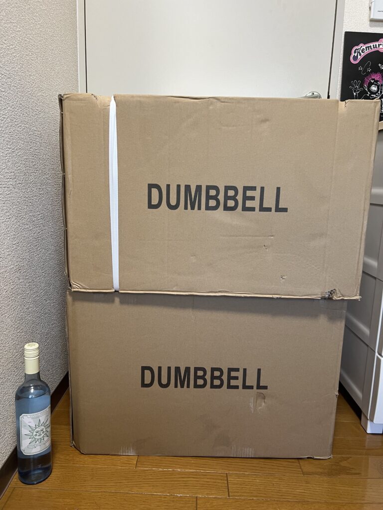 他に子供の物や家の物で買うべき物があるやろうと見送っていた一品になります。 今使っているものは、ホームセンターで10kgのダンベルを4セット購入し合体させ、最大18.5kgを2個持ってます。