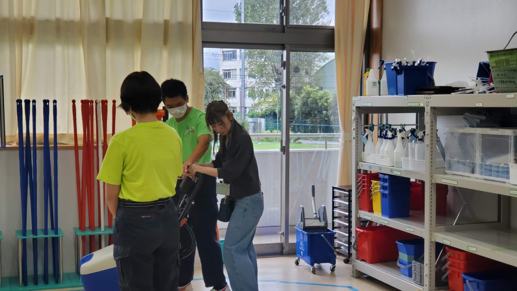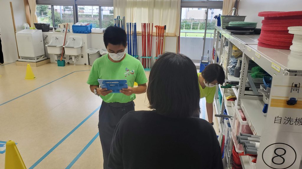 日々清掃技術のスキルアップと、企業様へお伺いし、現場実習を重ねております。