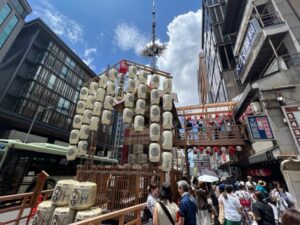 山鉾が止まってる時に中入って登れ並んでるだけで汗だくになりましたが、