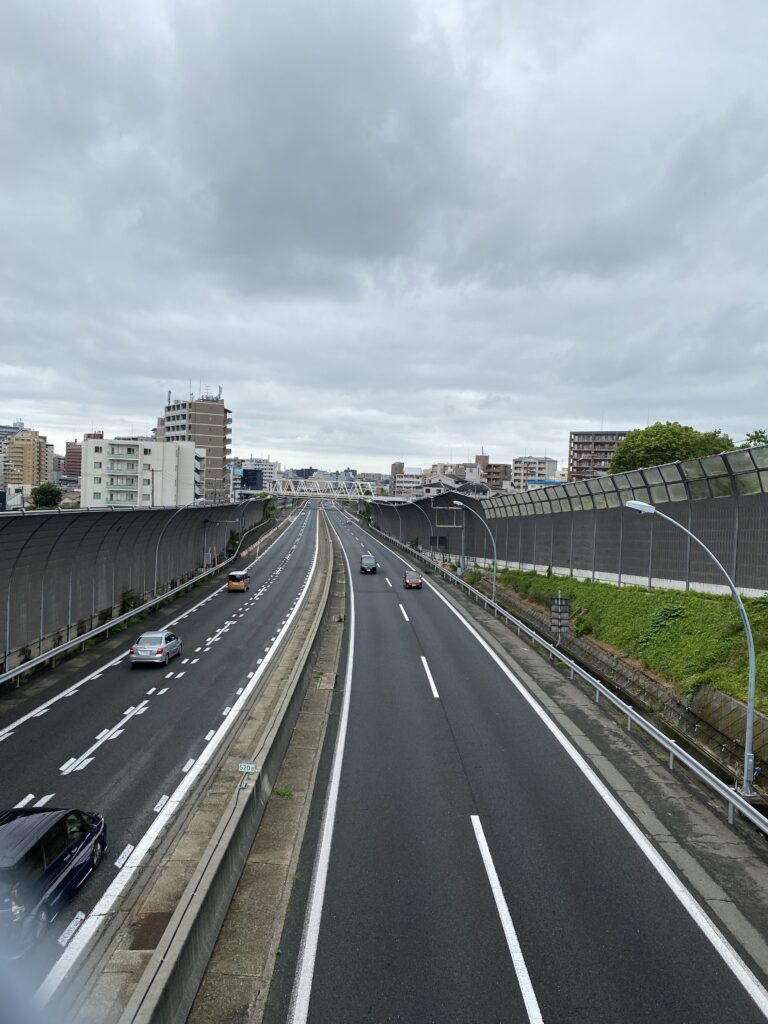 高速道路の高架を渡り、