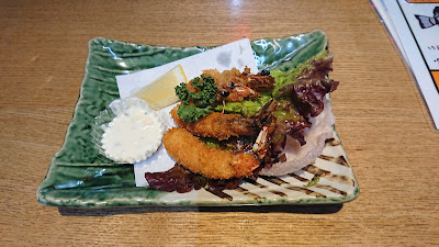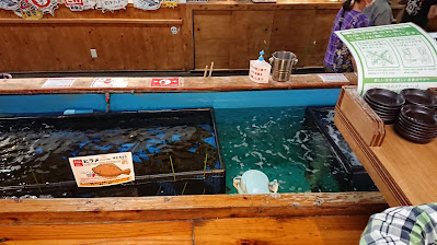店員さんからは別の魚を狙うようにすすめられたので結局息子には海老釣ってもらい、昼食はメニューからオーダーすることになりました