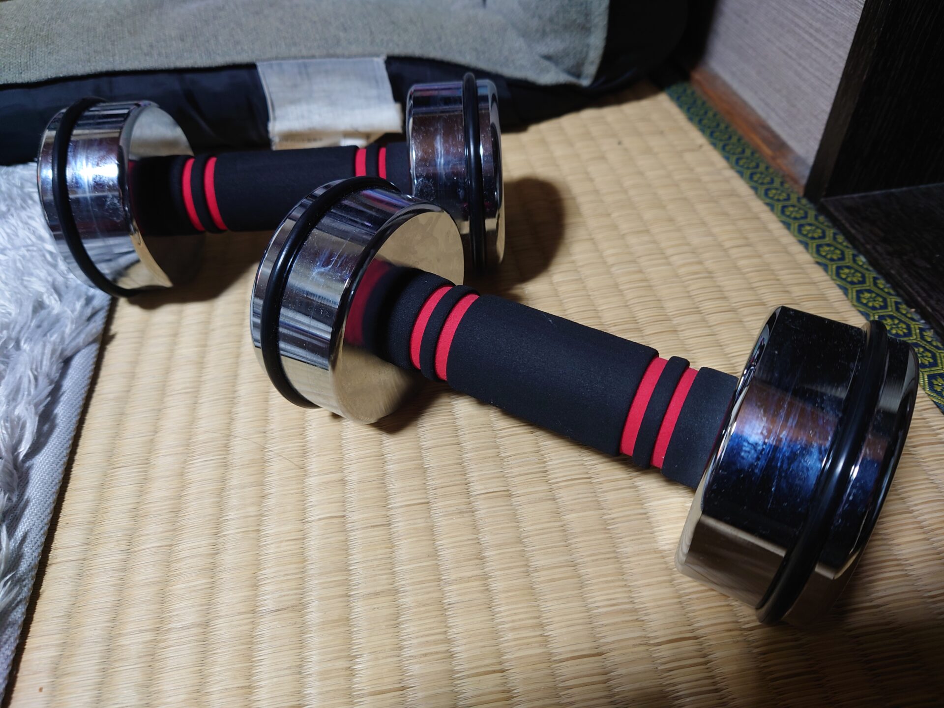 まずは初心者用、重量可変式で最大5㎏のダンベルで最低限の体作りです!