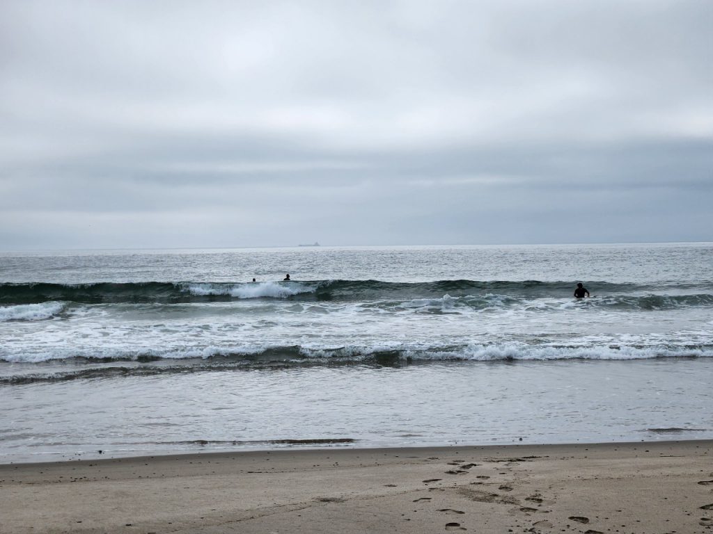 幸い波サイズは小波(膝・腰ぐらい)これ幸いに、バタ足練習を続けてました。