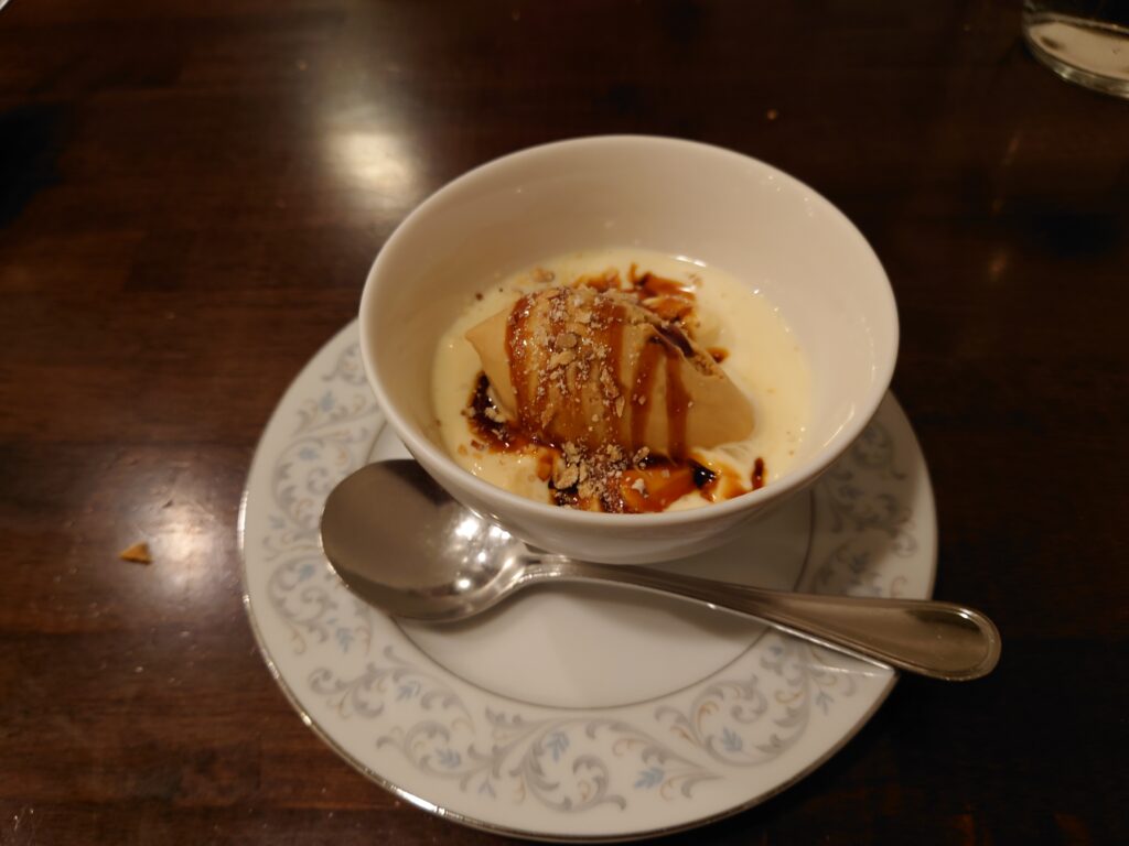 プリンのスープ仕立てカラメルアイスと共に!