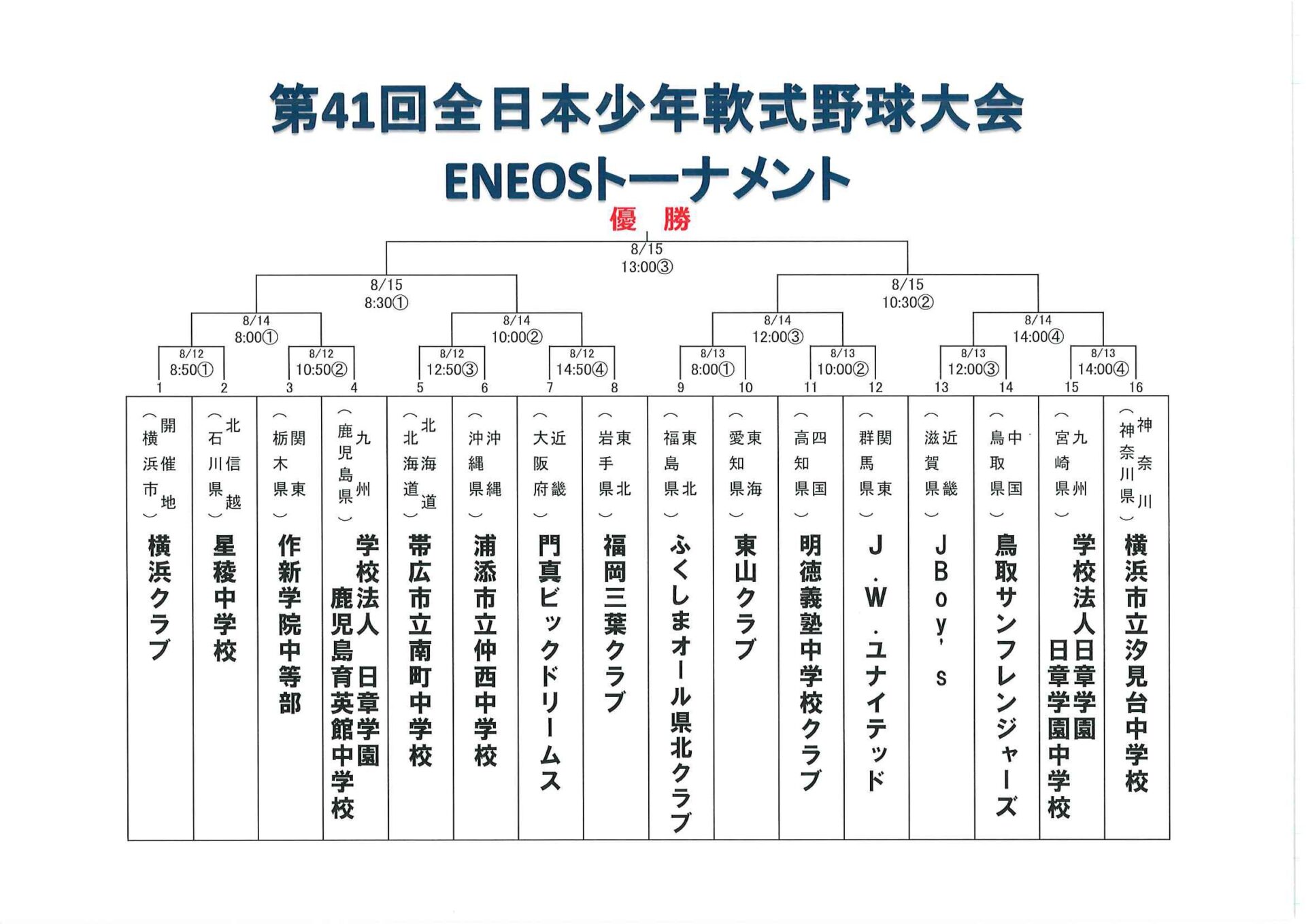 8月12日から全国の強豪16チームで行います。