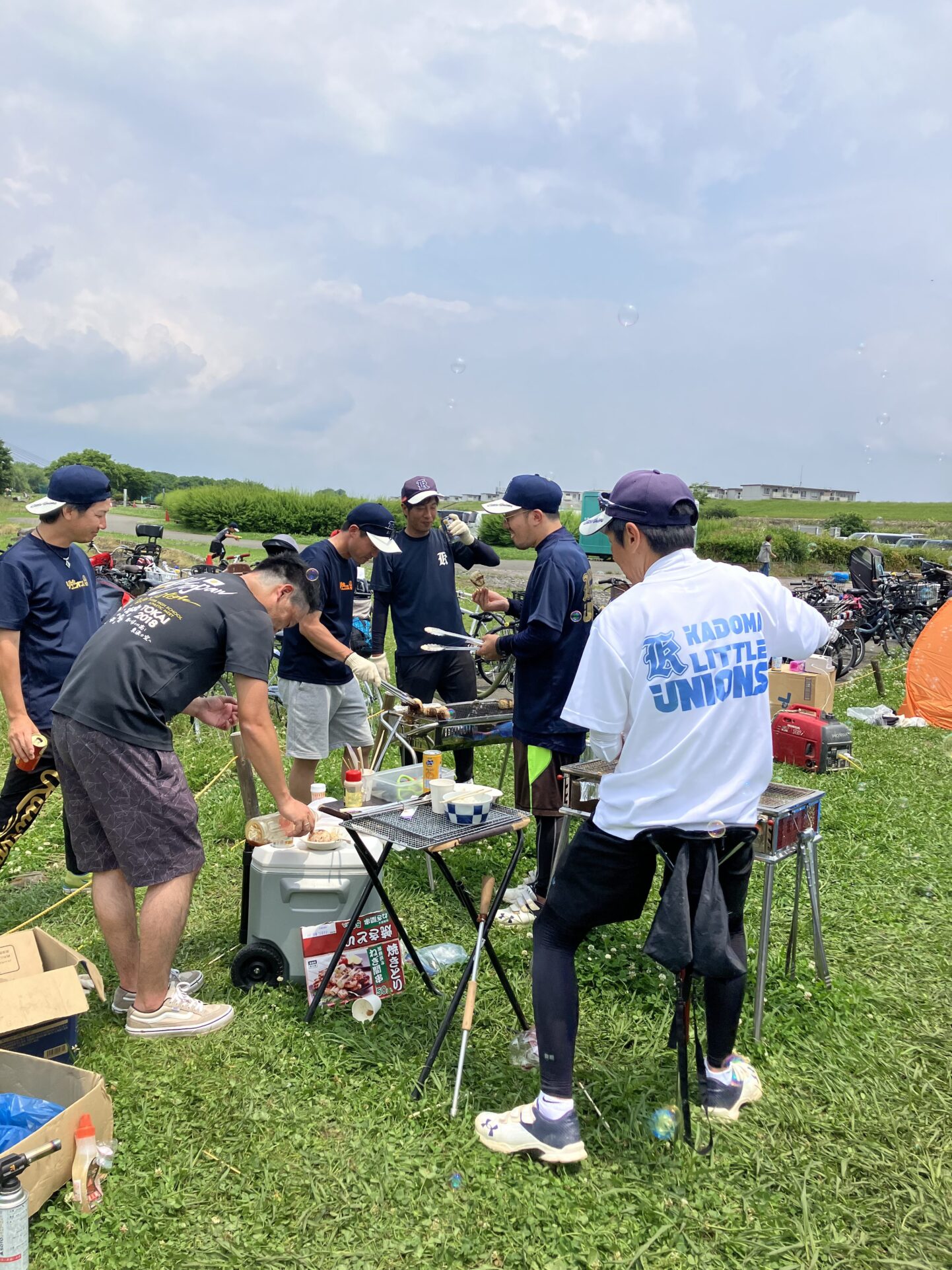 昨日は野球チームのBBQ(バーベキュー)を淀川の河川敷で行いました。