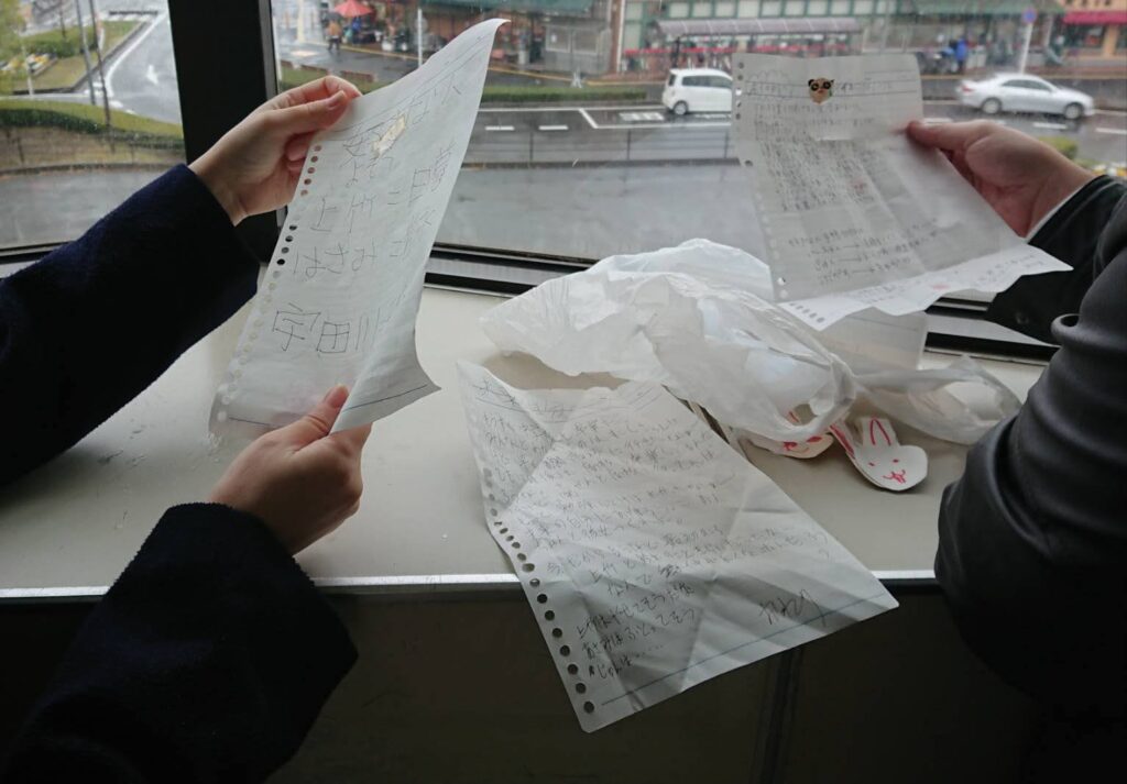 瓶を割ってみると、卒業式の日に仲の良かった一部のメンバーで書いたものでした。すっかり忘れていたので、思いがけないサプライズプレゼントになりました。